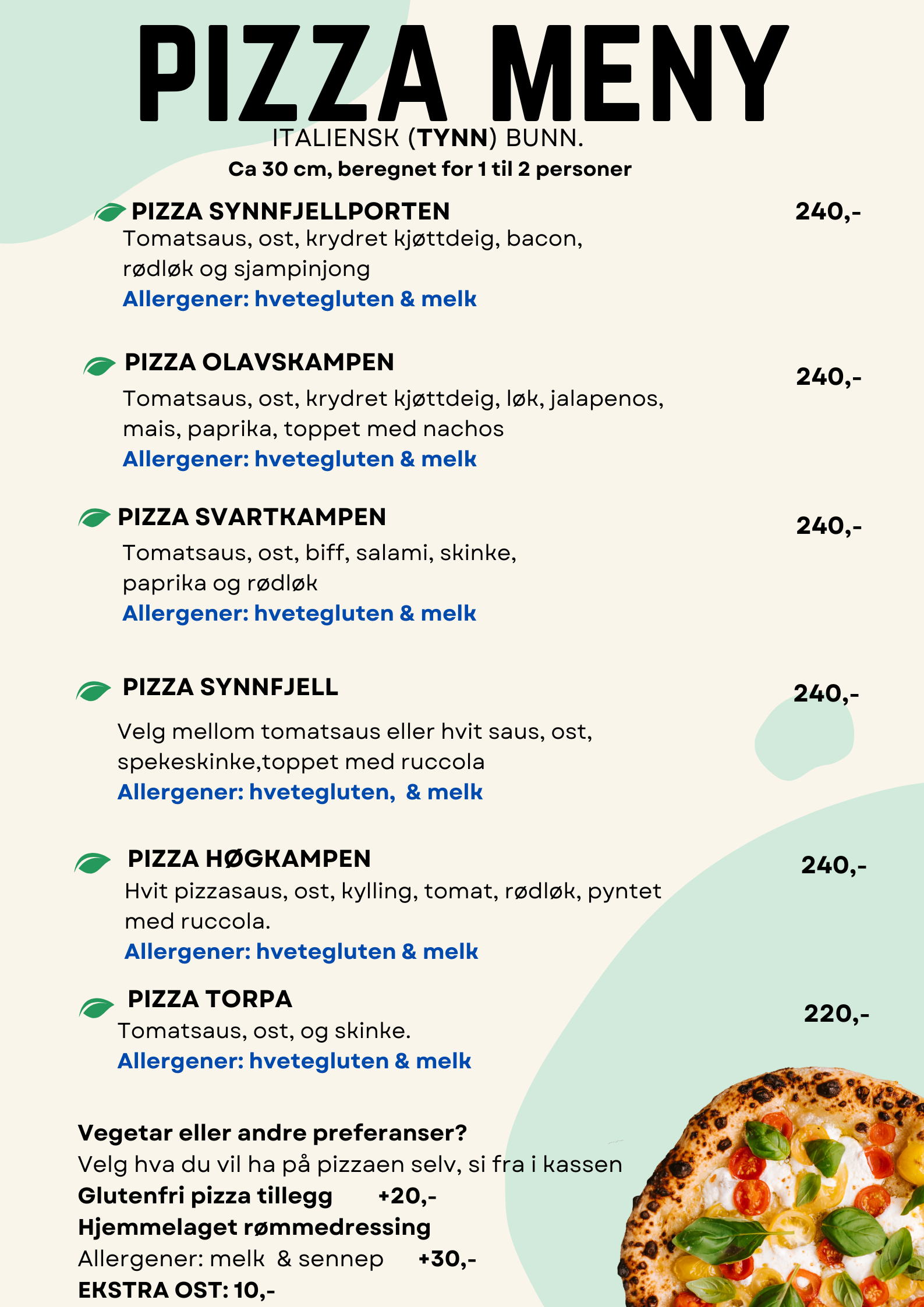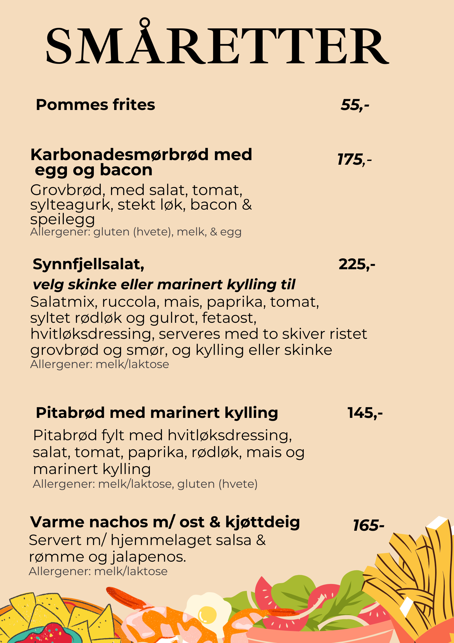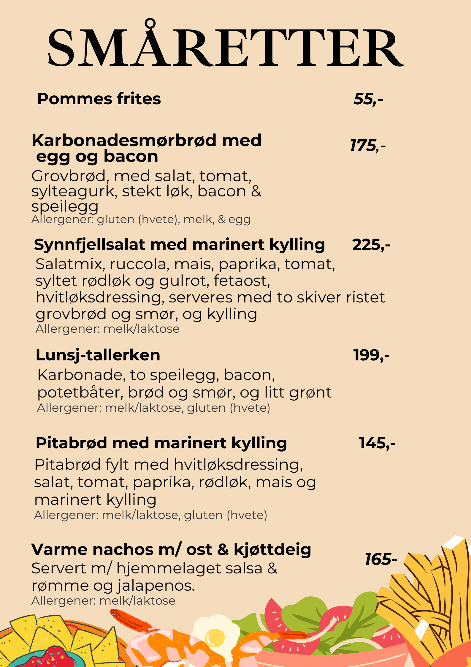 I ferier og høytider kan utvalget på menyen variere.